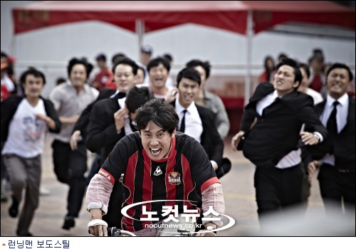 상암 월드컵 경기장에서 촬영된 장면이 대표적인데 자전거를 타고 하늘로 치솟은 그가 멋지게 계단에 착지해 쌩하고 달리는가 싶으면 어느새 자전거서 튕겨 나온 몸이 계단으로 쿵 떨어져 떼굴떼굴 구르는 식이다. 신하균은 매순간 그런 상황이 몸에 가해진 충격을 사실적으로 연기해내며 보는 이로 하여금 차종우의 고군분투에 동참하게 만든다.