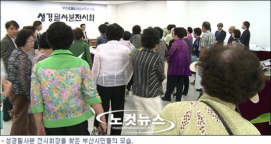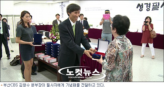 부산CBS(본부장 김창수)는 창립 54주년을 기념해 개최중인 ''성경필사본 전시회''에 참가한 필사자에게 기념패를 전달하는 행사를 전시회가 진행 중인 부산CBS 사옥 1층에서 열었다.