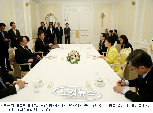 박 대통령이 남북당국회담 무산과 관련해 공식석상에서 발언한 것은 이번이 처음이며 탕 전 위원의 접견을 계기로 이같은 입장을 밝힌 것은 한·중 정상회담을 앞두고 남북문제 해결에 중국이 적극적으로 나설 것을 주문한 것이다.
