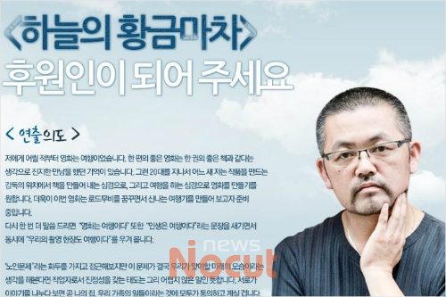 영화 '지슬'의 오멸 감독이 차기작 '하늘의 황금마차' 후반작업 비용을 소셜펀딩으로 모금한다.
