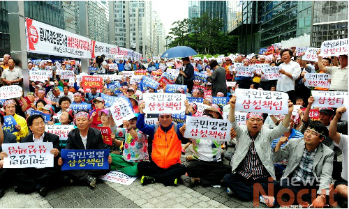태안기름유출사고가 6년을 맞고 있는 가운데 서해안유류피해민총연합회(회장 국응복) 소속 피해주민 2천여 명이 2일 대규모 상경집회를 열고 '삼성 타도'를 외쳤다.