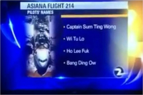 앞서 KTVU는 미 샌프란시스코 착륙사고 소식을 전하면서 아시아나 조종사의 이름을 욕설이 섞인 말로 비난해 보도했다.