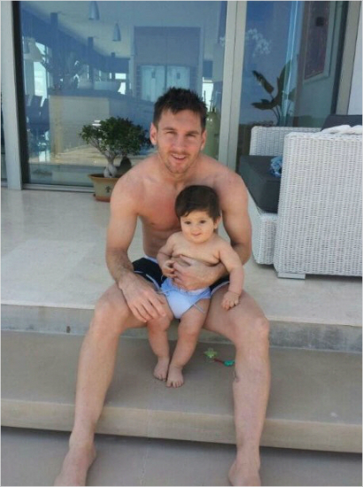 수영복 차림의 메시는 아들 티아고를 안은 채 카메라를 응시하고 있다. 메시 부자의 닮은 꼴 패션과 티아고의 인형 같은 외모는 팬들의 눈을 사로잡았다. 메시는 현재 시즌을 앞두고 가족과 함께 달콤한 휴가를 보내고 있다.