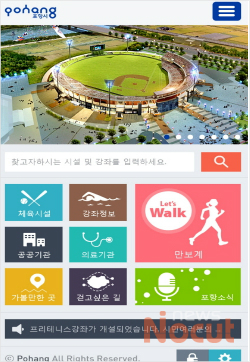 시의 대표적인 공공체육시설인 포항종합운동장, 포항야구장 등 위치를 포함한 체육시설의 정보와 포항시내의 체육도장, 골프연습장 등 민간체육시설의 정보를 조회할 수 있다.
