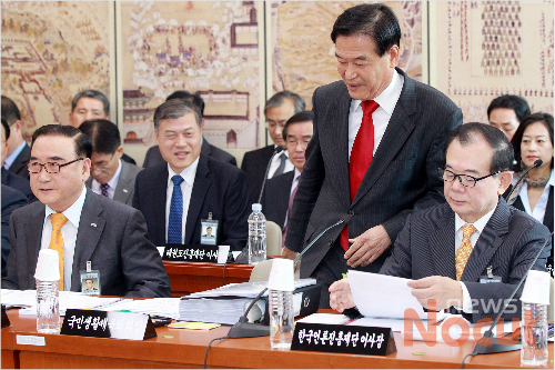 서상기 새누리당 의원이 21일 국회 교육문화체육관광위원회 국정감사에 피감기관장인 국민생활체육회 회장으로 증인석에 출석하고 있다.