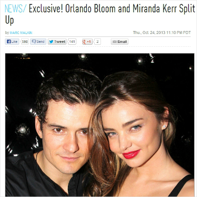 미국 연예 전문매체인 '이온라인(eonline)'은 24일(현지시간) 이들의 결별을 확인했다며 올랜도 블룸과 미란다 커가 지난 몇 달 동안 별거했으며 최근 이 결별을 공식화하기로 했다고 보도했다.
