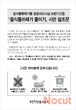 포항시 음식물 쓰레기 수거 업체가 반입을 전면 중단해 음식물 쓰레기 처리에 큰 차질을 빚고 있는 가운데 포항시가 '음식물쓰레기 줄이기 대시민 협조문'을 긴급 제작해 배부에 나섰다.