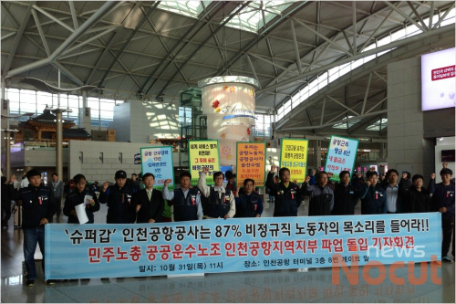민주노총 공공운수노조 인천공항지역지부는 11일 오전 7시부터 24시간 동안 '1일 파업'에 들어갔다.