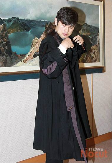19일 오전 서울 신정동 남부지방법원 1일 명예법관 위촉식에 참석한 넥센 히어로즈 투수 손승락이 법복을 입고 있다.