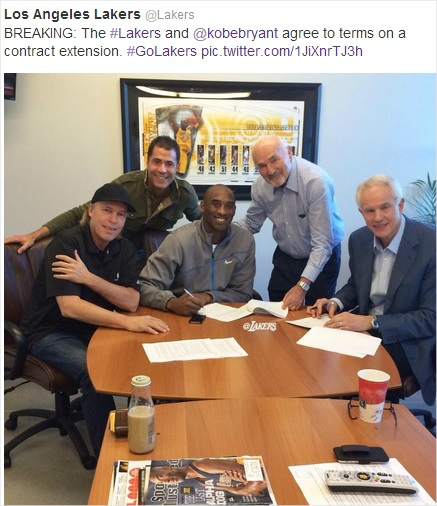 브라이언트는 지난 달 LA 레이커스와 2년 연장 계약을 체결했다 (사진 = LA 레이커스 구단 트위터 캡처)