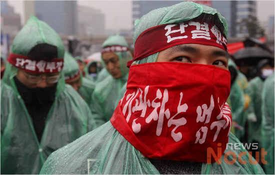 전국철도노동조합 조합원들이 9일 오후 서울역 광장에서 열린 총파업 출정식을 갖고 있다.
