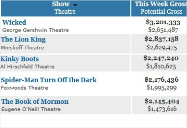 이번 기록으로 '위키드'는 브로드웨이 역사상 최초로 3백만 달러를 돌파한 작품인 동시에 전년도 자신이 세웠던 주간 박스오피스 입장 수익 기록(2,94만 7,142 달러)을 깨뜨리며 유례 없는 흥행 금자탑을 남긴 것.
