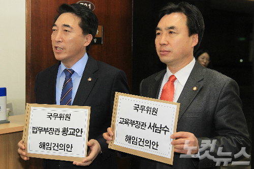 황 장관에 대해서는 채동욱 전 검찰총장 찍어내기와 국정원 대선 개입 사건 특별수사팀 교체 등을, 서 장관은 교학사 역사교과서를 비호했다는 이유를 들었다.