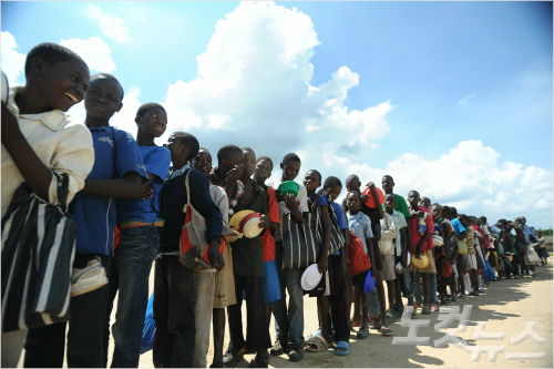 하루 한 끼 급식을 받기 위해 줄을 선 아이들. (자료사진)