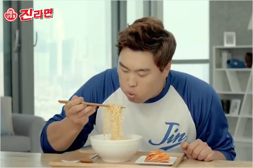 오뚜기 '진라면' 광고에 출연한 류현진. (유튜브 영상 캡처)