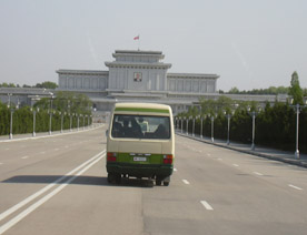 평양 교외지역을 20분쯤 내달렸을까? 평양 시내인 모란봉 구역으로 들어가기 위해서 금룡터널을 통과하자마자 금수산 기념궁전이 위용을 드러낸다. 김일성이 재임기간 주석궁으로 사용했고, 현재는 김일성의 시신이 안치돼 있는 곳이다. 그 옆으로 김일성 종합대학이 자리 잡고 있다. 평양 시내에 들어서자마자 마주하게 된 주석궁을 보고 놀라움이 앞섰다. 주석궁이라면 어디엔가 격리돼 있고 비밀스러운 곳에 은폐, 엄폐돼 있어야 하지 않냐는 추측과 동떨어져 있었기 때문이다. 그러나 조금만 다르게 본다면 북한의 수도 평양의 초입에 북한의 상징인 주석궁이 위치한 것은 어찌 보면 당연할 수 도 있다.