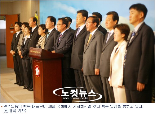 민노당 문성현 대표는 30일 국회에서 기자회견을 갖고 "이번 방북길을 포기하는 것은 민주노동당에게 주어진 역사적 임무를 저버리는 것과 같다"며 이번 방북의 정당성을 거듭 밝혔다.
