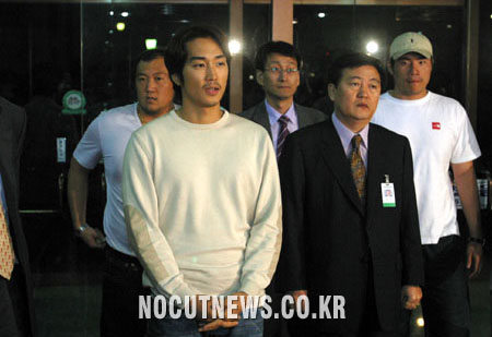 그동안 마음고생이 심했던 듯 수염을 덥수룩하게 기른 송씨는 "대한민국 남자로 병역을 기피한것에 대하여 국민여러분께 사죄드린다"고 짧은말을 남긴채 조사실로 향했다.