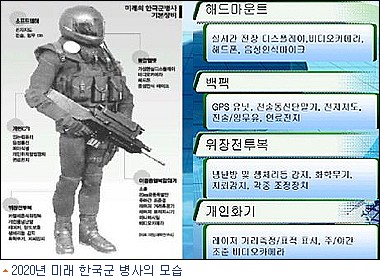 전투로봇 수준의 최첨단 장비를 갖춘 미래 한국군 병사의 모습이 제시돼 관심을 끌고 있다.