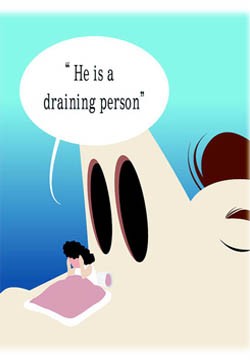 ''He tires me(아주 피곤한 사람)'', ''He is a draining person(아주 진물을 다 빼게 하는 사람)''등이 가능하다.