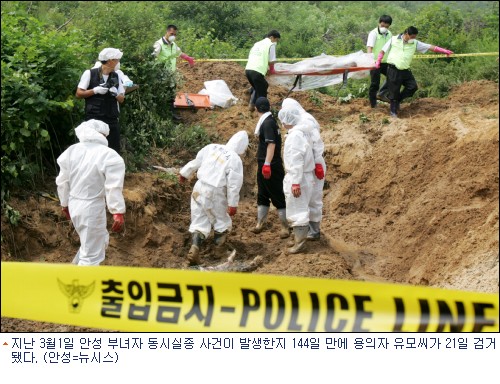 지난 3월 초 안성에서 실종된 40대 여성 2명을 살해한 뒤 암매장한 용의자가 사건 발생 144일만에 경찰에 붙잡혔다.