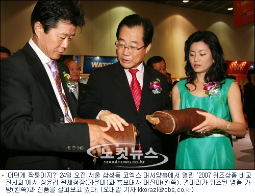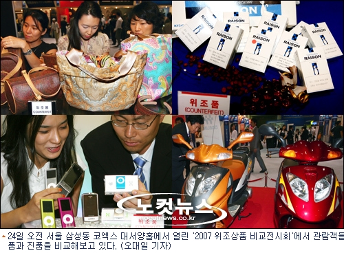 서울 삼성동 코엑스 3층 대서양홀에는 에르메스, 루이비통, 구찌 등 국내외 50여개 유명 브랜드의 위조상품과 진품 1천여점이 전시돼 있다. 관세청이 위조 상품의 폐해를 알리기 위해 ''위조상품 비교 전시회''를 연 것이다.