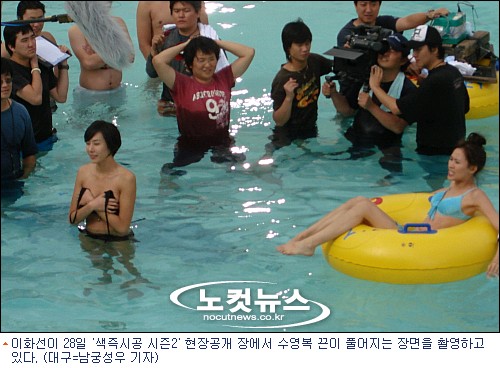 28일 대구 스파밸리 수영장에서 열린 현장공개에서 이화선은 모델 출신답게 175cm가 넘는 큰 키에 육감적인 비키니 몸매를 선보여 수십여 대 카메라의 플래시 세례를 받았다.