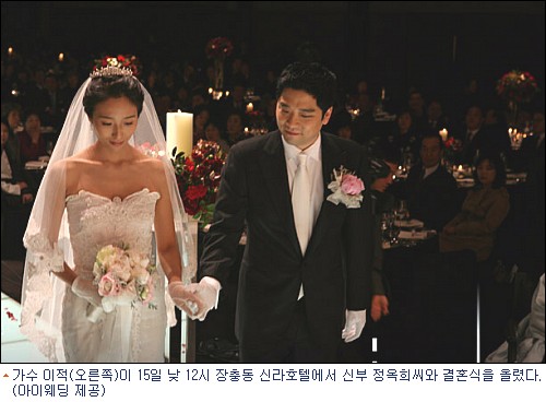 이적은 15일 낮 12시 서울 장충동 신라호텔에서 신부 정옥희씨와 결혼식을 올렸다.