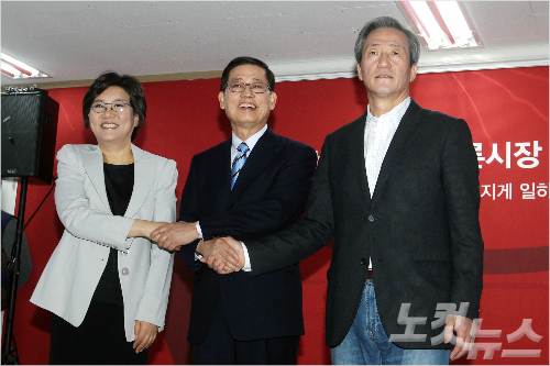 새누리당 서울시장 예비후보 김황식 전 국무총리(가운데), 이혜훈 의원(왼), 정몽준 의원(오). 윤성호 기자/자료사진