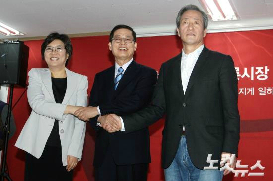 (왼쪽부터) 새누리당 서울시장 후보 이혜훈 의원, 김황식 전 국무총리, 정몽준 의원. (사진=윤성호 기자/자료사진)