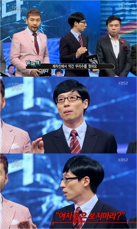 특히 남자들의 노래방 애창곡 1위인 'Endless Love'의 가수 고유진이 등장, '떼창'을 부르는 부분과 미쓰에이 수지의 출연에 술렁이는 객석은 '나는 남자다'의 최대 웃음 포인트로 꼽혔다. 포경수술의 은어인 '고래잡이' 이야기도 남자들끼리 있기에 가능한 대화였다.
