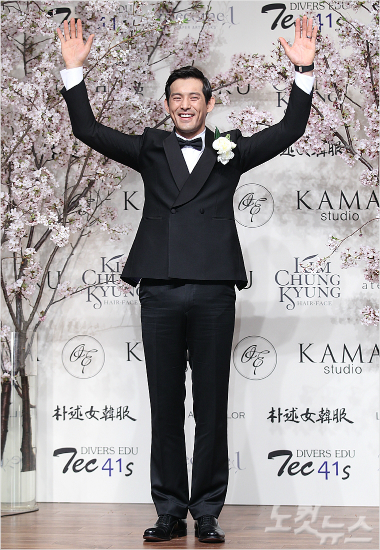 배우 오지호 결혼식이 12일 오전 서울 장충동 신라호텔에서 열린 가운데 신랑 오지호가 밝게 웃으며 포토타임을 갖고 있다.