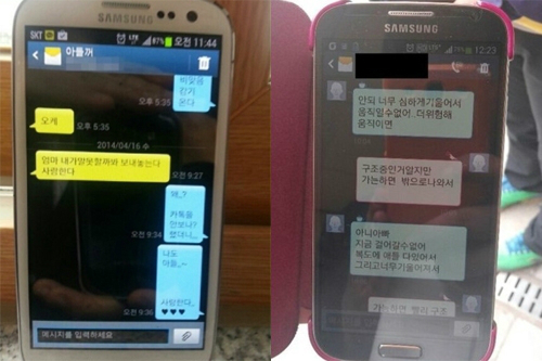 16일 오전 진도 해상에서 발생한 대형 여객선 세월호 침몰 사고 후 학생들이 지인과 보낸 문자가 SNS 등을 통해 공개돼 안타까움을 더하고 있다.