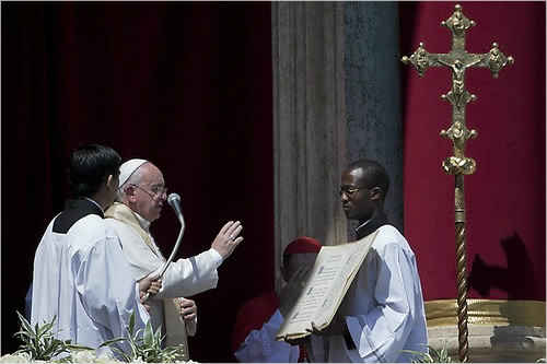 교황 프란치스코가 즉위 후 두번째로 맞이하는 이번 부활절 미사는 전날 밤 폭풍우 속에서 진행된 부활 전야 미사와 달리 화창하게 갠 날씨 속에서 거행됐다.