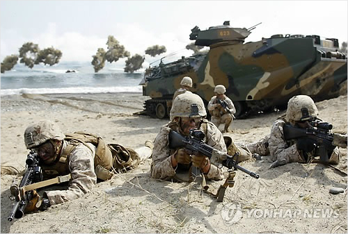 한미 연합 훈련 중인 미군 해병대 병사들. (연합뉴스 DB)