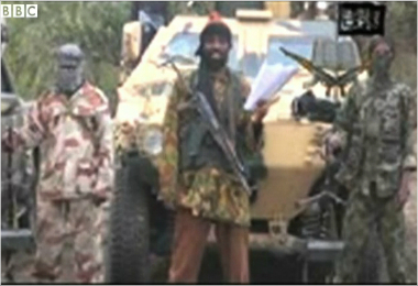 나이지리아 여학생 납치했다고 밝히는 보코하람의 지도자 아부바카르 셰카우(사진=BBC 뉴스화면 캡쳐)