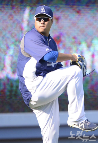 10일(한국 시각) 부상 이후 첫 투구 훈련을 소화한 LA 다저스 류현진.(자료사진)