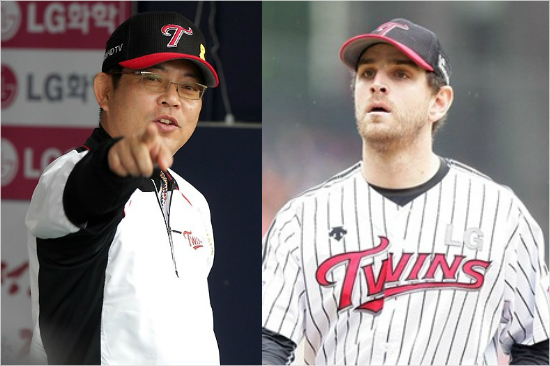 '리오단, 걱정 마!' 양상문 LG 감독은 올해 부진을 보이고 있는 외국인 투수 리오단(오른쪽)에 대해 일단 안고 간다며 믿음을 실어줬다.(자료사진=LG)