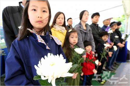 헌화순서 기다리는 어린이들. 황진환 기자/자료사진