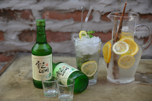 무학의 '좋은데이' 소주를 베이스로 만든 여름 칵테일 소히토(왼쪽)와 샹그리아.