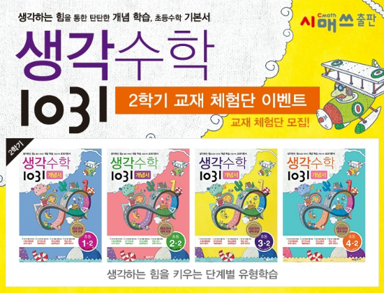 영재 사고력 수학교육기업 시매쓰(www.cmath.co.kr)는 초등 3, 4학년 수학 개념서 개편을 기념해 '생각수학1031' 2학기 교재를 미리 체험하는 교재체험단 80명을 오는 24일까지 모집한다.