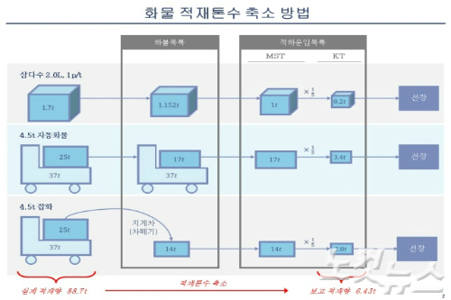 실제로는 최대 2.5배까지 화물량을 초과하고도 관련 서류인 하불목록과 적하 운임목록에는 적정량을 실은 것으로 축소 기재했다는 얘기다.