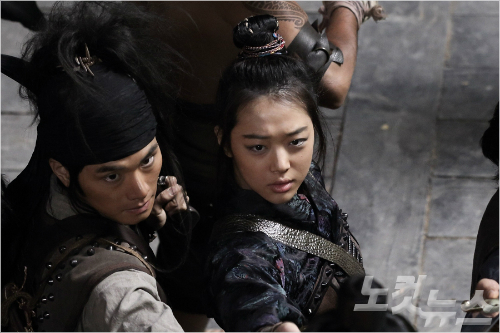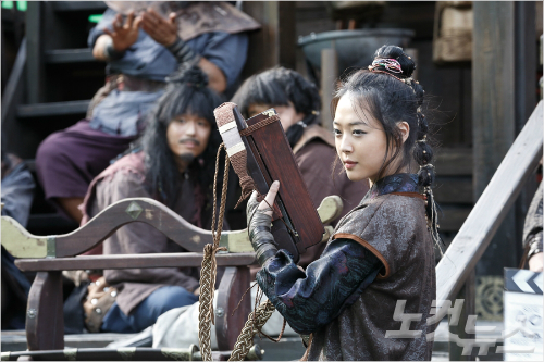 두 번째 스틸은 흑묘가 해적단, 산적단, 개국세력이 치열한 격전을 벌이고 있는 선상에서 함께 싸우기 위해 연노를 장전하고 있는 장면이다. 앳된 얼굴, 새초롬한 표정과 야무진 연노 동작은 막내 해적으로 열연한 설리의 변신을 엿볼 수 있도록 돕는다.