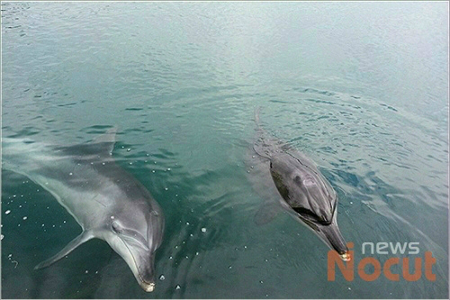 지난해 7월 18일 제주시 구좌읍 김녕리 앞바다로 방류된 남방큰돌고래 제돌이와 춘삼이 (사진=제돌이방류시민위원회 제공)