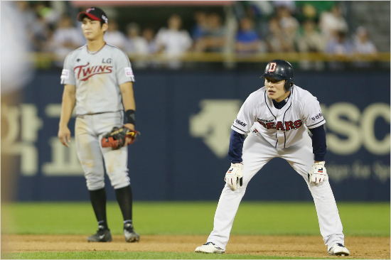 '이 모습, 정규리그 끝까지?' 한 치 앞을 내다볼 수 없는 순위 싸움이 올해 프로야구 막판을 뜨겁게 달구고 있다. 사진은 27일 LG-두산의 잠실 라이벌 대결 때 LG 유격수 오지환(왼쪽)과 두산 주자 민병헌의 모습.(자료사진=두산 베어스)