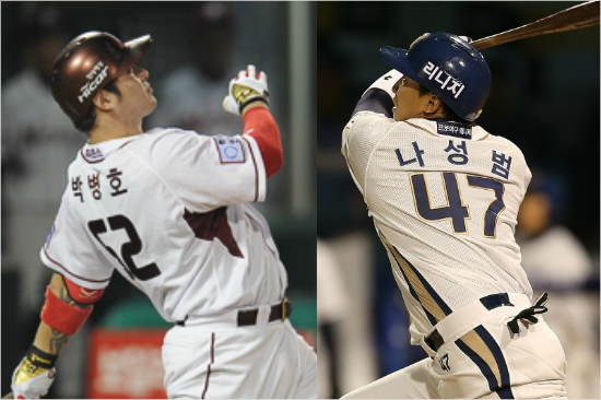'성범아, 2위는 우리가 할게' 넥센은 NC와 승차가 한때 2경기까지 좁혀졌지만 최근 2연승으로 다시 4경기까지 벌렸다. 사진은 두 팀의 간판 거포 박병호와 나성범.(자료사진=넥센, NC)