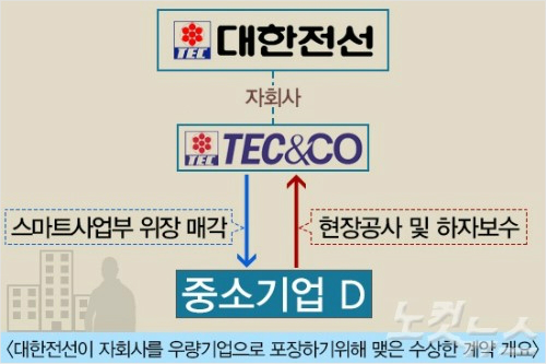 ◈ 금감원·공정위 뒷짐…중소기업은 한계상황D사 관계자는 "대기업 계열사가 이렇게 중소기업을 착취하고 있는데 관련 당국이 책임을 회피하고 있다"며 "티이씨앤코는 우리가 일을 마무리하자 이제 시간끌기를 통해 죽이려는 것"이라며 "우리를 통해 적자를 해소한 뒤 사업부를 다른 곳에 매각하려는 꼼수"라고 말했다.