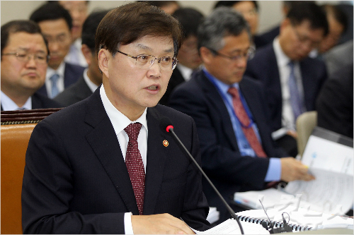 최양희 미래창조과학부 장관이 13일 국회 미래창조과학방송통신위원회 국정감사에서 의원들의 질의에 답변을 하고 있다. 윤창원기자