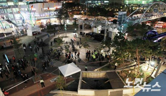 17일 오후 경기 성남 판교신도시 유스페이스 야외광장에서 열린 제1회 '판교 테크노밸리축제' 축하공연 과정에서 환풍구 붕괴로 오후 7시 41분 사상자 25명 중 16명이 사망했다. (사진=황진환 기자)
