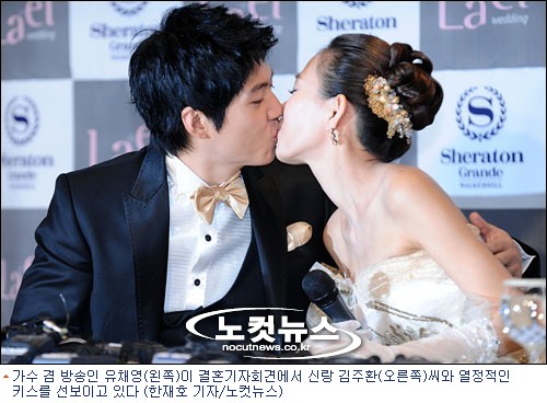 유채영은 28일 오전 10시, 서울 광진구 광장동 쉐라톤 워커힐 호텔 프리시디오홀에서 진행된 결혼기자회견에서 “첫키스와 프러포즈를 모두 내가 먼저했다”고 고백했다.